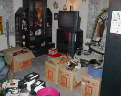 alleine sechs Kartons von Utensilien und Geschirr aus einem Raum wurden