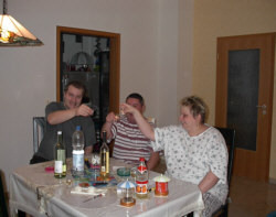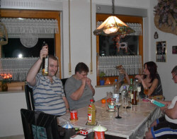 Hause, später tranken wir reichlich Sekt und spielten lustige Spielchen.