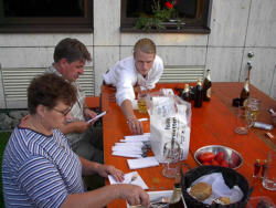 Unten nun der 2. Versuch einer Sonnwendfeier ein Jahr später, die insgesamt 3 Tage mit Vorbereitung bis hin zum Mittagslunch am Tag darauf und aufräumen gedauert hatte. Solche Feste sind von langer Hand geplant und organisiert. Deshalb auf diesem Wege nochmal ein herzliches Dankeschön all unseren Gästen die uns unterstützt und bekräftigt haben und dank Ihnen es wieder ein gelungenes Fest wurde. Danke für die Anerkennung und die Mühe, schön daß es Euch bei uns „geschmeckt“ und gefallen hat, so macht es uns immer wieder Freude dies zu wiederholen. Danke an Gisela die „unermüdliche Köchin“ und an Alexandra, die fleißig geholfen hat. Danke auch für die kleinen Geschenke und Mitbringsel der Gäste. Es wurde wieder kräftig gekocht, gebrutzelt und gegrillt. Die Auswahl der zahlreichen Hauptgerichte war manchen fast zu viel ( Ha, Ha)!! Es wurde getanzt, zur späten Stunde gab es nochmal „Nachschlag“ Salate, Kuchen, Kaffee usw. und es war wieder ein Super Tag der bis 4:00 Uhr angehalten hat. Dazu beigetragen haben: unser Musiker, der bei allen sehr gut ankam, unser „Zapfmeister“ Rudi, die Damen welche zusätzlich leckere Kuchen mitbrachten ( obwohl es nicht nötig war ), unsere Verwandten „Rheinländer“, die bereits Freitag angereist sind und bei der Vorbereitung tätig waren. Auch den Damen danke, welche freiwillig beim Spülen Einsatz gezeigt haben. Rundum wurde es ein schönes Fest, am folgenden Tag wurde gefrühstückt und unsere Rheinländer wurden verabschiedet, Mittag gab es „Reste-Essen“ und Kuchen, dann ging es an die Aufräumaktion die noch lange dauerte. In diesem Sinne auf weitere schöne Festlichkeiten!!