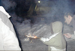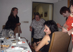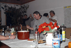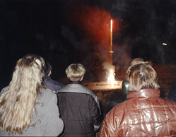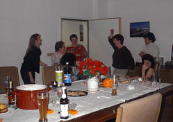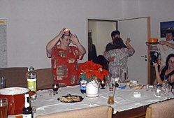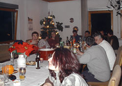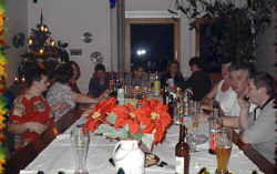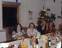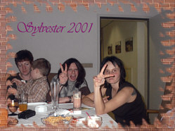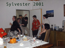 Sylvesterparty bei uns die gemütlich anfing mit gutem Essen, Bowle und Schnaps, später sehr lustig wurde mit Tanz und Musik aus dem CD Spieler. Es wurde kräftig gesungen und sehr laut und viel geschossen, das neue Jahr wurde bis in die frühen Morgenstunden ausgelassen gefeiert, manche Gäste blieben über Nacht und beim Frühstück waren alle ziemlich down.
