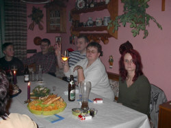 Sylvesterparty bei Verwandten, bei sehr gutem Essen, gemütlicher Runde, Musik und Tratsch und schönes Feuerwerk das mit Sekt begossen wurde.